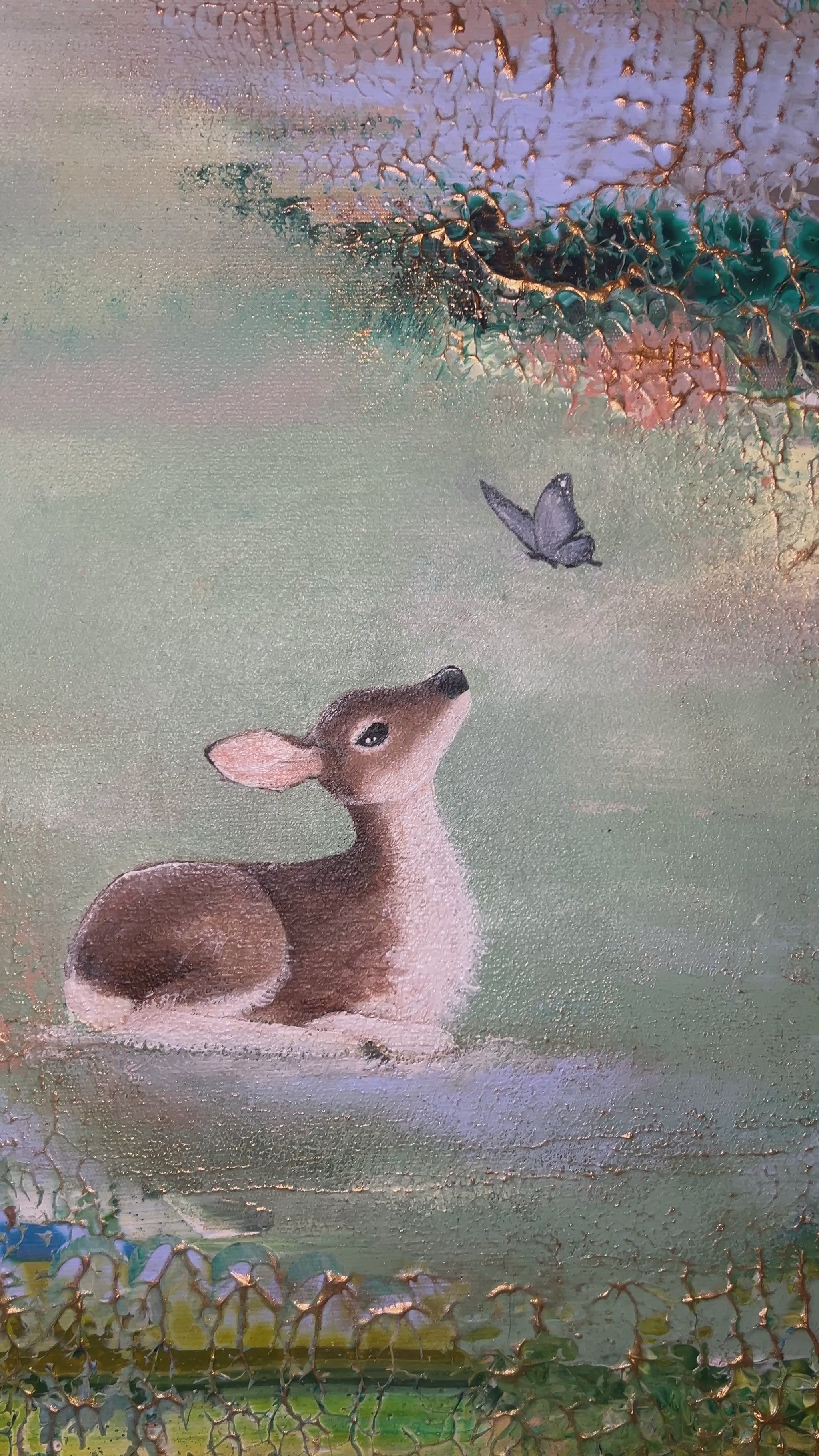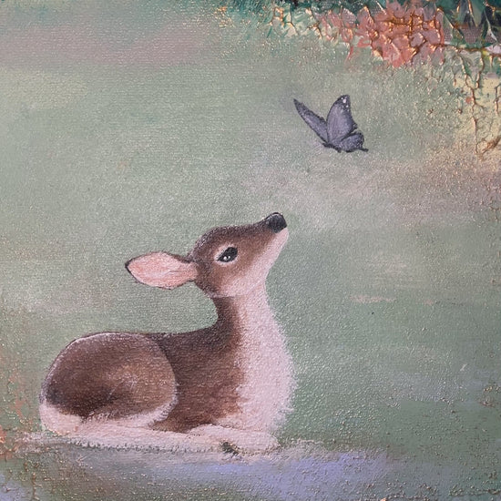 A quiet meeting between the deer and the butterfly.
